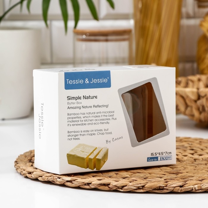 Маслёнка экологична и практична, имеет прекрасный природный цвет дерева. Маленькие бортики обеспечивают надёжную фиксацию и не дают маслу впитывать посторонние запахи, а ручка позволяет удобно взяться за неё и поднять крышку.