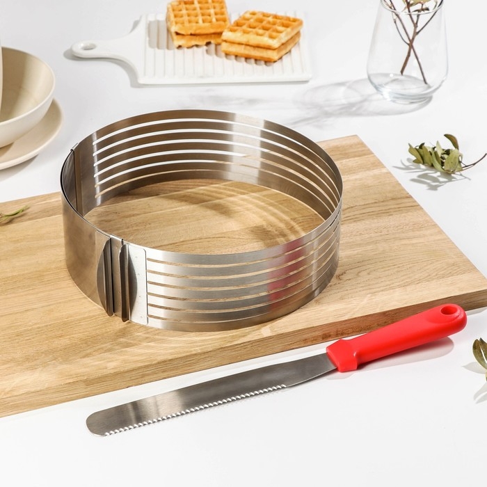 Набор кондитерский Доляна, 2 предмета: форма для выпечки с прорезями 25-30×8 см, нож для бисквита