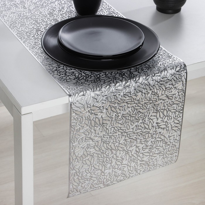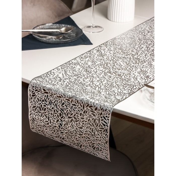 Дорожка на стол Доляна «Манифик», 30×150 см, цвет серебряный