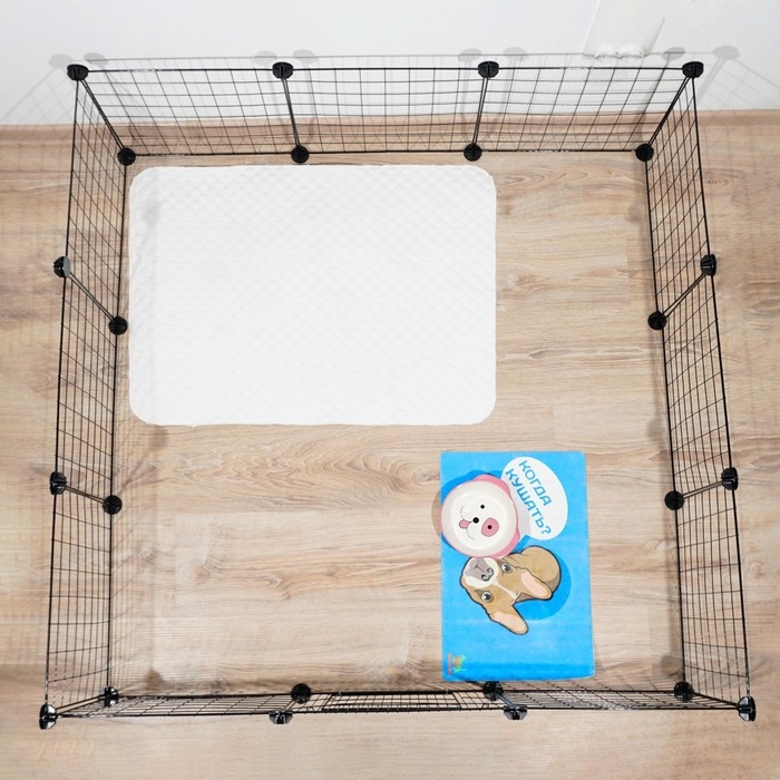 Вольер 12 секций, металлический, 105 х 105 х 35 см, (35 х 35 см звено), чёрный