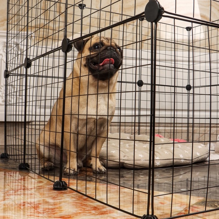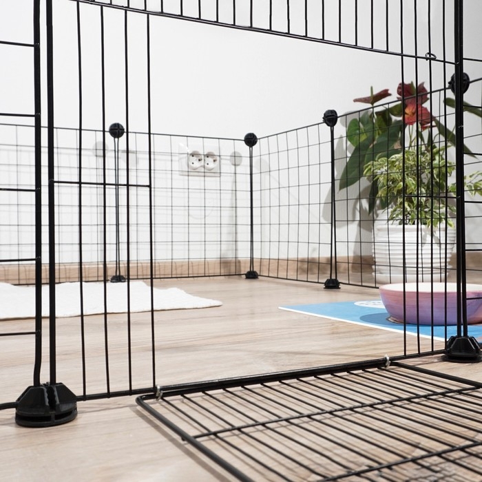 Полезные советы: позаботьтесь о том, чтобы собаке было комфортно внутри ограждения - установите удобную миску на прутья и постелите мягкий коврик.