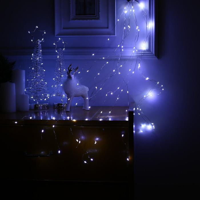 Гирлянда «Конский хвост» 10 нитей по 1 м, IP20, серебристая нить, 100 LED, свечение белое, 8 режимов, 12 В