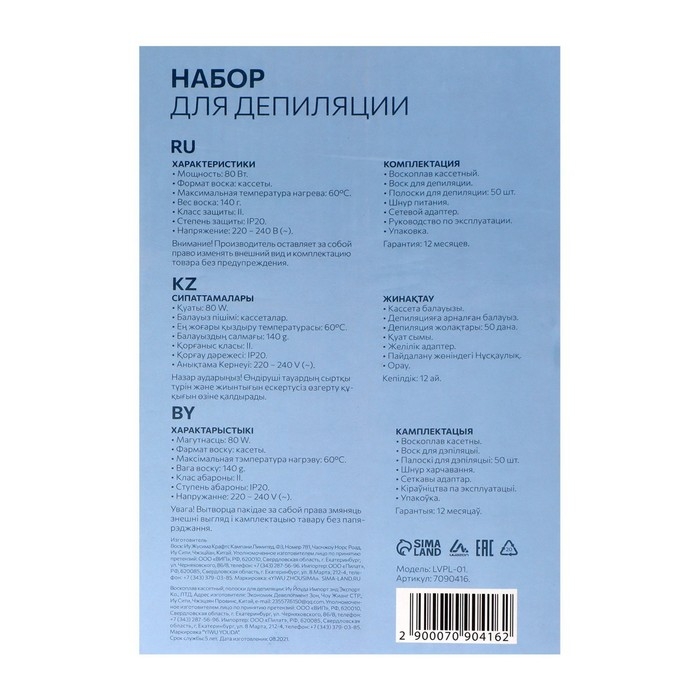 Набор для депиляции Luazon Воскоплав кассетный, 80 Вт, воск, полоски для депиляции