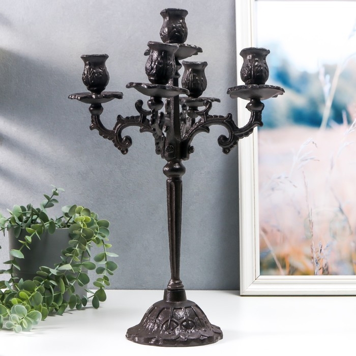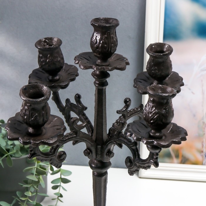 Подсвечник чугун на 5 свечей "Королевский" чёрный 43х29х29 см
