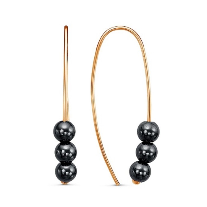 Серьги «Гематит» трио, розовое золочение, цвет чёрный