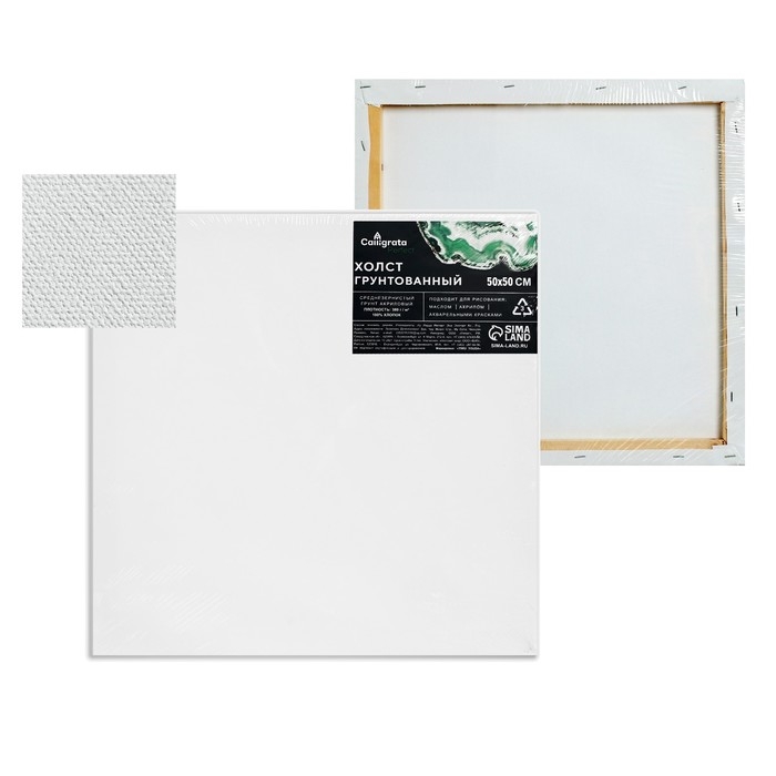Холст на подрамнике, хлопок 100%, 1,6 х 50 х 50 см, акриловый грунт, среднезернистый, 380 г/м²