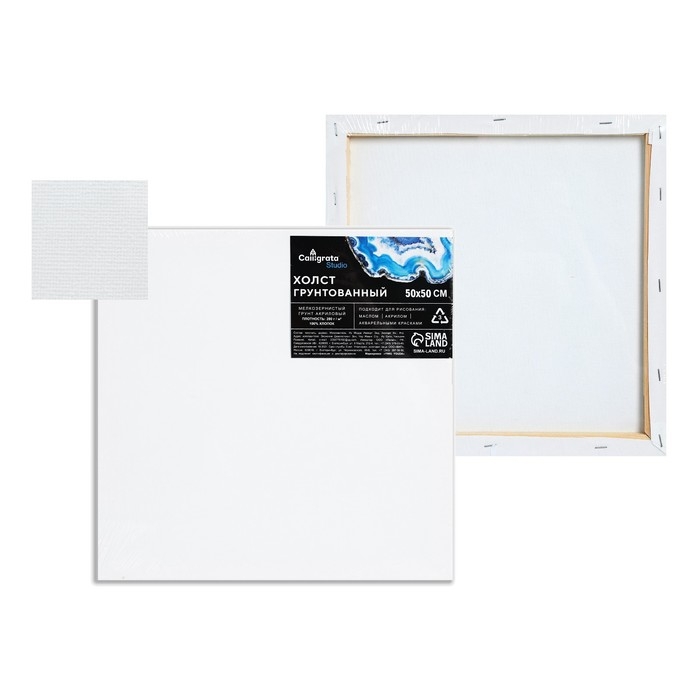 Холст на подрамнике, хлопок 100%, 1,6 х 50 х 50 см, акриловый грунт, мелкозернистый, 280 г/м²