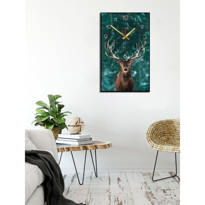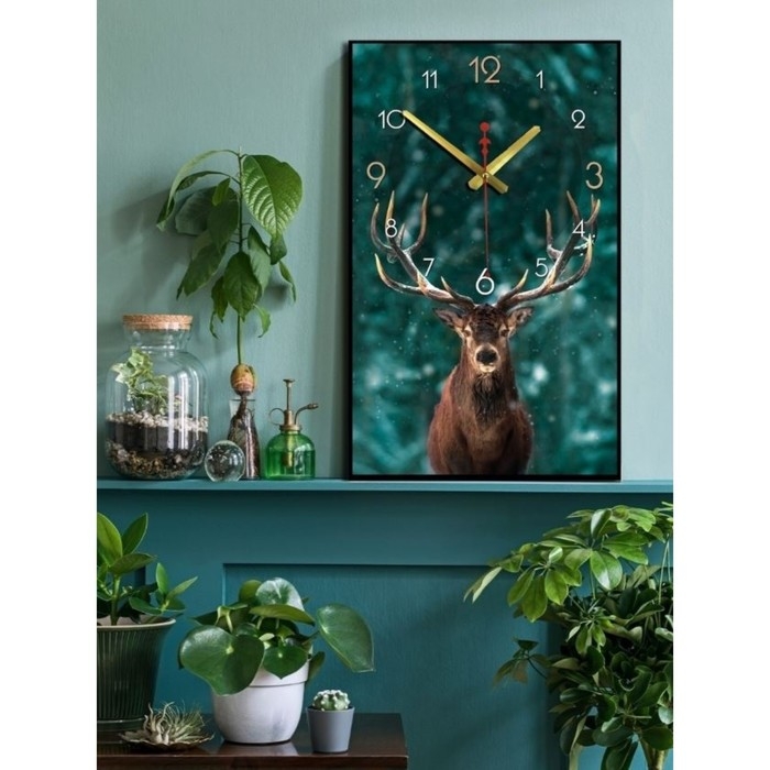 Часы-картина настенные, интерьерные "Олень", плавный ход, 57 х 35 х 4 см