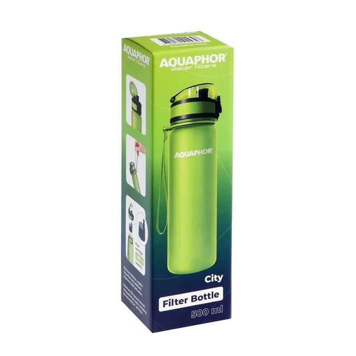 Матовое бархатистое покрытие бутылки приятно на ощупь, широкий ремешок дополнительно фиксирует бутылку во время использования, защитный колпачок не даст воде пролиться в сумке. Объем 0,5 л оптимален для утоления жажды на ходу, новую порцию воды для фильтрации можно добавить, как только это будет необходимо. Удобно для поездок и перелетов.