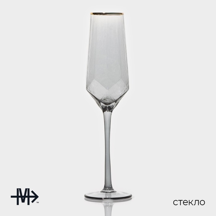 Набор бокалов для шампанского стеклянный Magistro «Дарио», 180 мл, 7×27,5 см, 6 шт, цвет графит