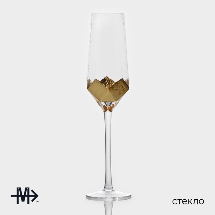 Набор бокалов для шампанского стеклянный Magistro «Дарио», 180 мл, 7×27,5 см, 6 шт, цвет золотой