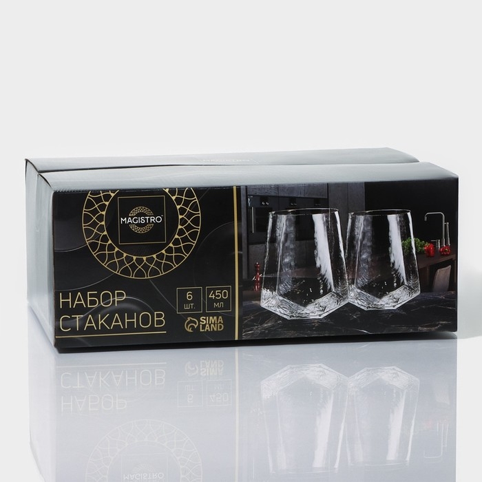 Набор стаканов стеклянных Magistro «Дарио», 450 мл, 10×11,5 см, 6 шт, цвет графит