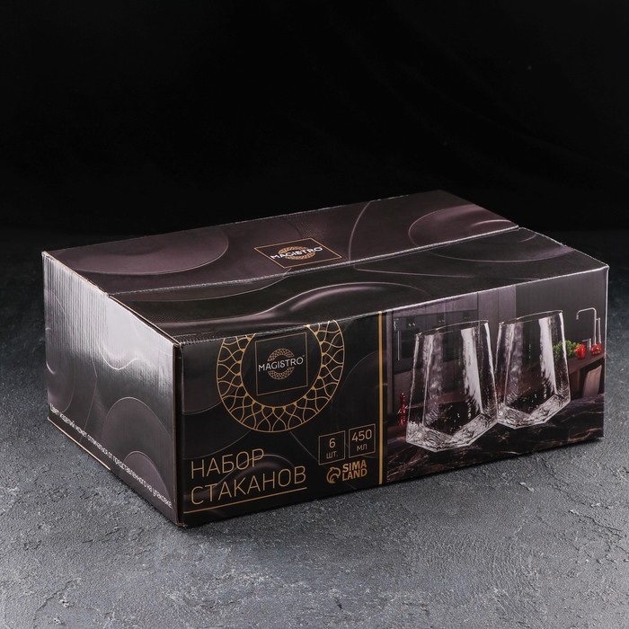Набор стаканов стеклянных Magistro «Дарио», 450 мл, 10×11,5 см, 6 шт, цвет изумрудный