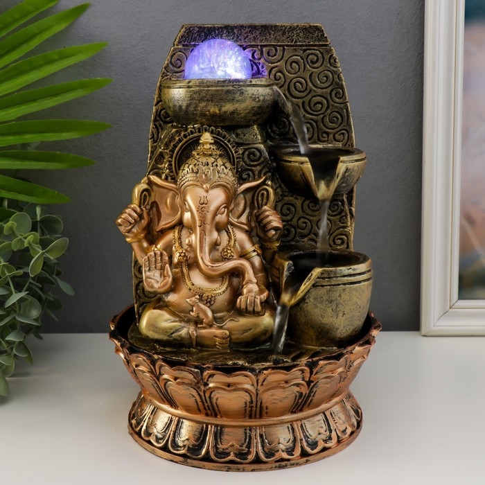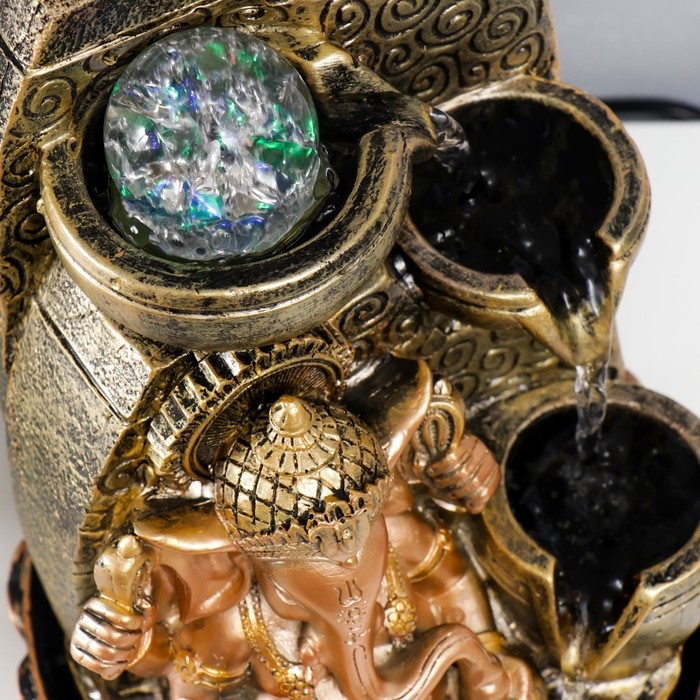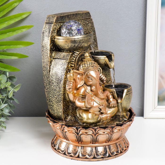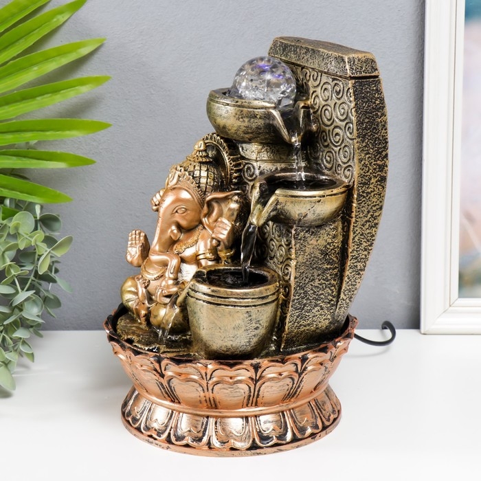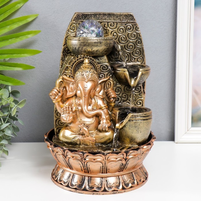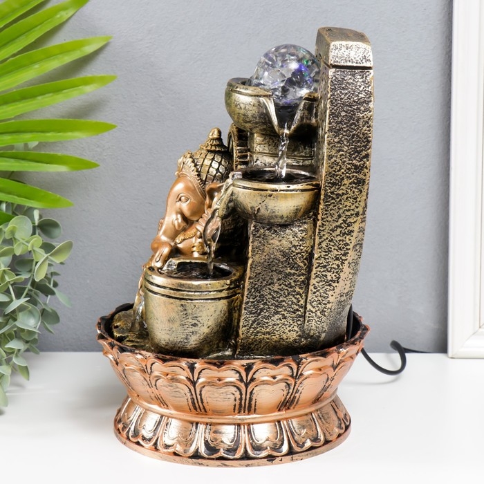 Фонтан настольный с подсветкой "Ганеша - Благословение" золотая бронза 31х20х20 см