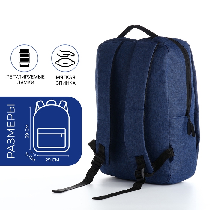 Рюкзак мужской на молнии, 2 наружных кармана, с USB, цвет синий