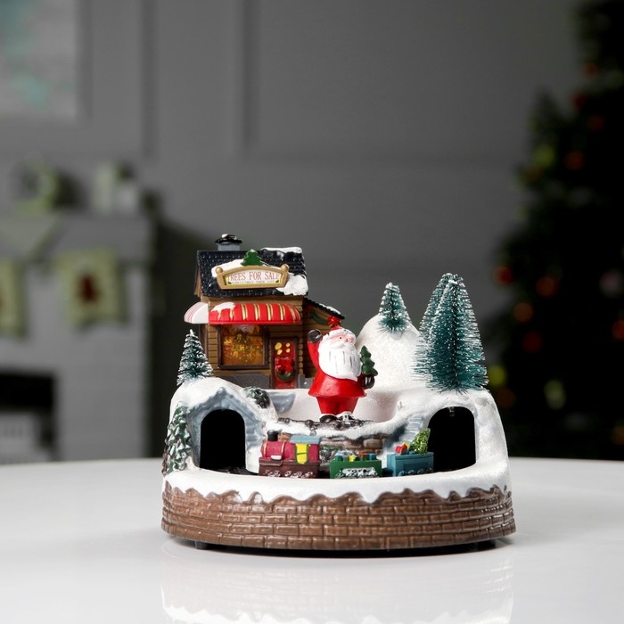 Светодиодная фигура «Поезд и Дед Мороз» 20 × 20 × 16 см, полистоун, батарейки ААх3 (не в комплекте), USB, свечение тёплое белое