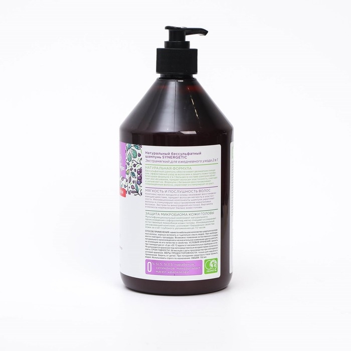 Натуральный бессульфатный шампунь SYNERGETIC Экстрамягкий для ежедневного ухода 2 в 1 , 0,75 мл