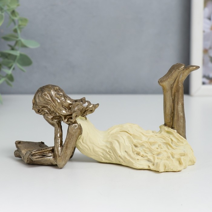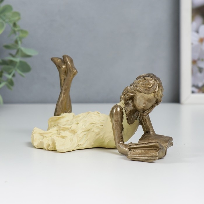 Сувенир полистоун "Девушка читает книгу, жёлтое платье" 6,5х9х14 см