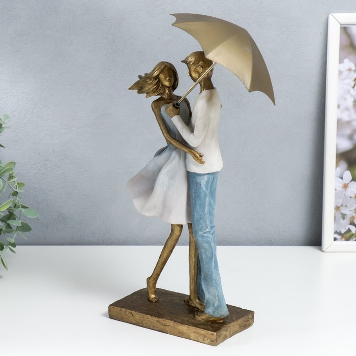 Сувенир полистоун "Влюблённая пара под зонтом" бело-голубой градиент 37,5/31х8,5х15 см