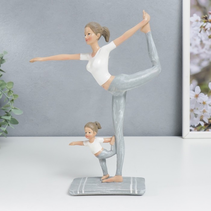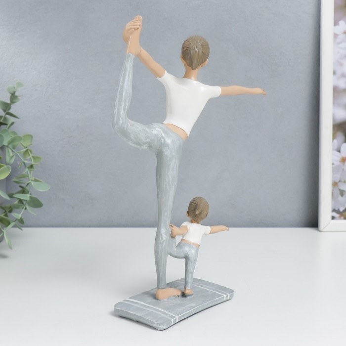 Сувенир полистоун "Мама с дочкой в позе танцора" бело-серый 25,5х6,5х19,5 см