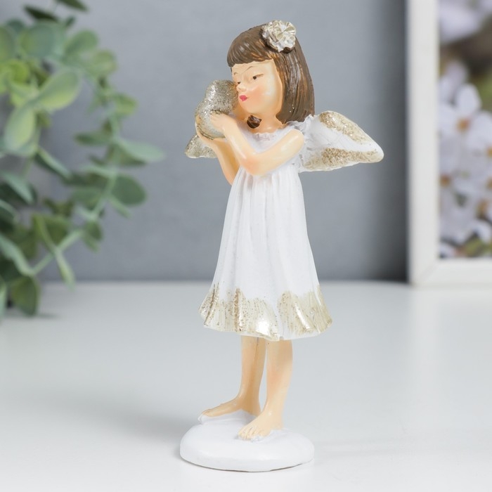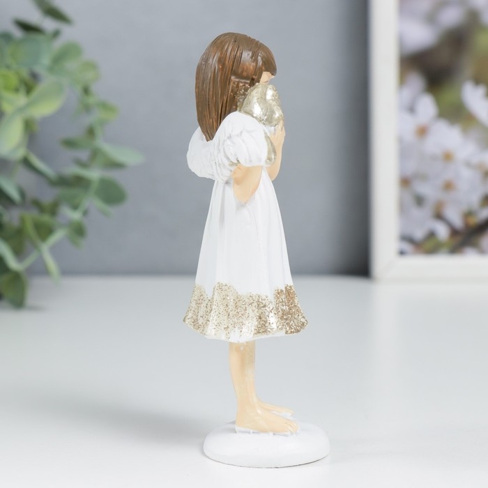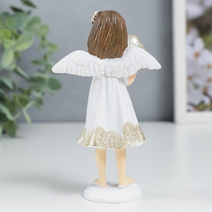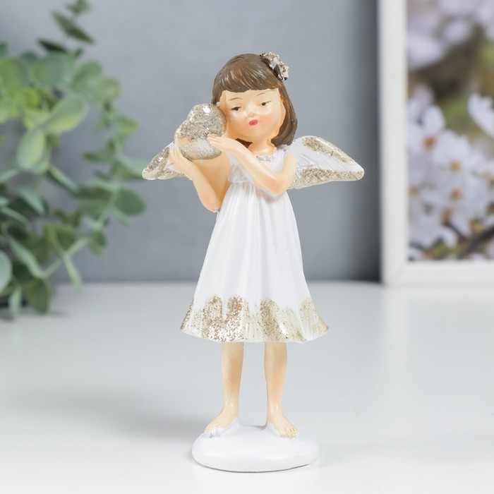 Сувенир полистоун "Ангелочек-девочка в белом платье с сердечком" блеск 11х6,4х3,3 см 7788559