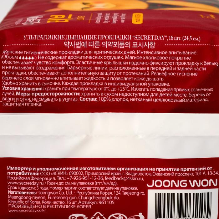 Прокладки «Secret Day», Ультратонкие дышащие, органические, 16 шт/уп