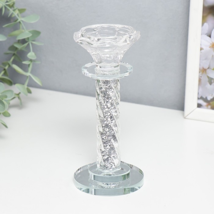 Подсвечник стекло на 1 свечу "Спираль с камешками" 16х7х7 см