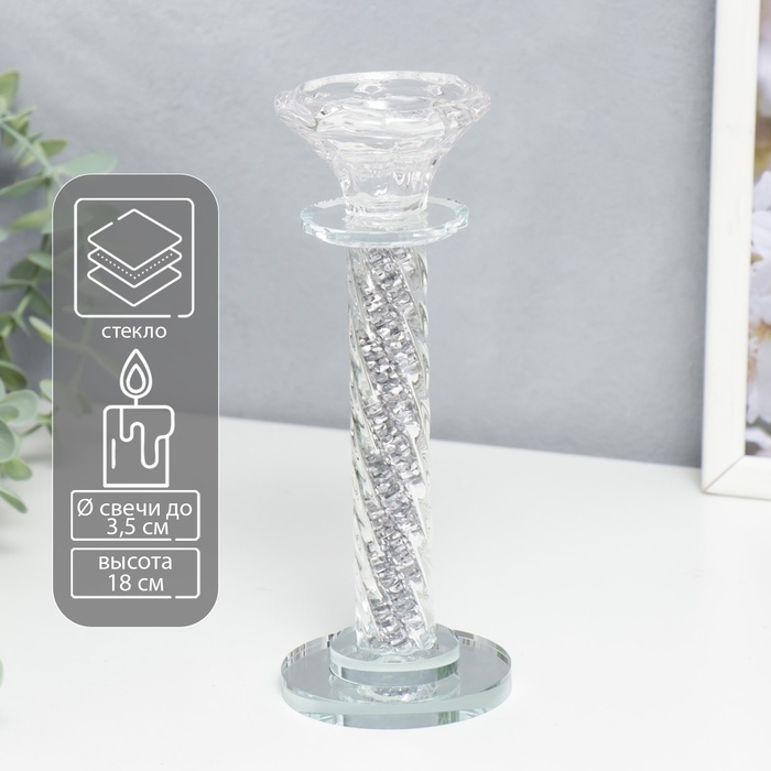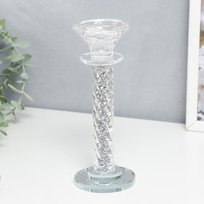 Подсвечник стекло на 1 свечу "Спираль с камешками" 18х7х7 см