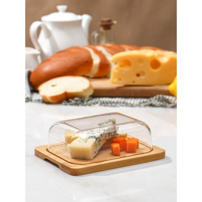 Маслёнка - сырница с крышкой Adelica, 17×11×6,5 см, бук