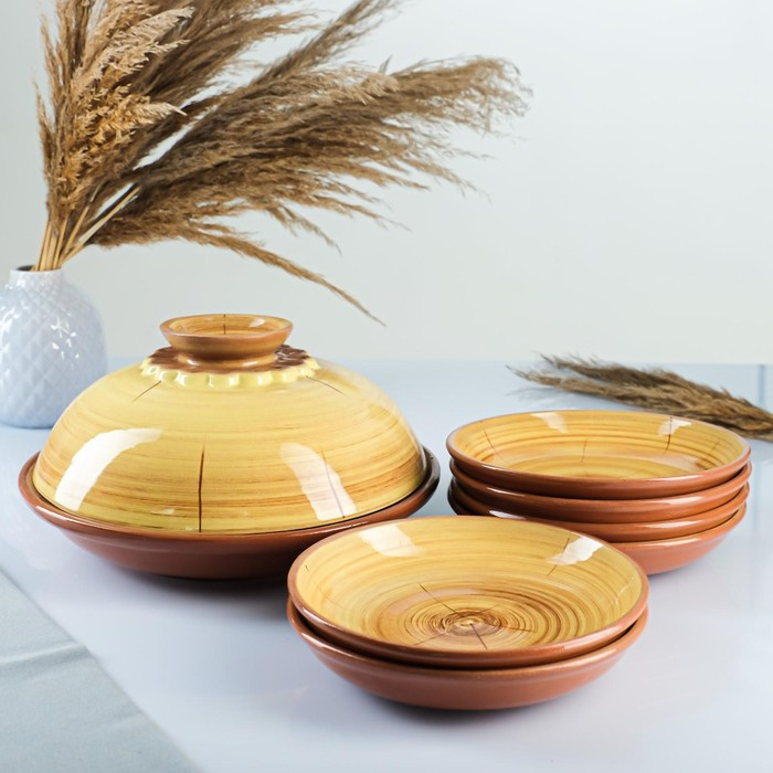 Набор для блинов 7 предметов: 1 шт. блинница, 6 шт. тарелок, с росписью, можжевельник