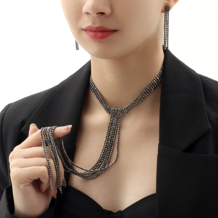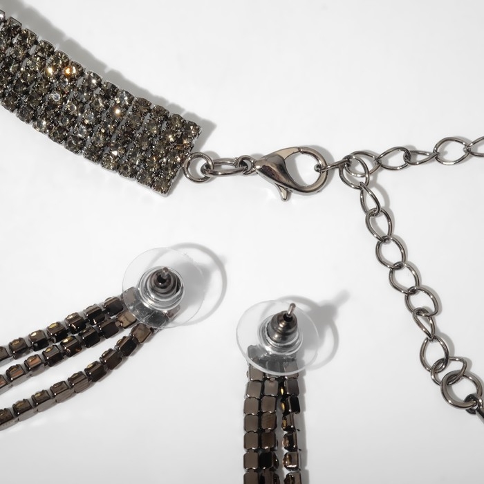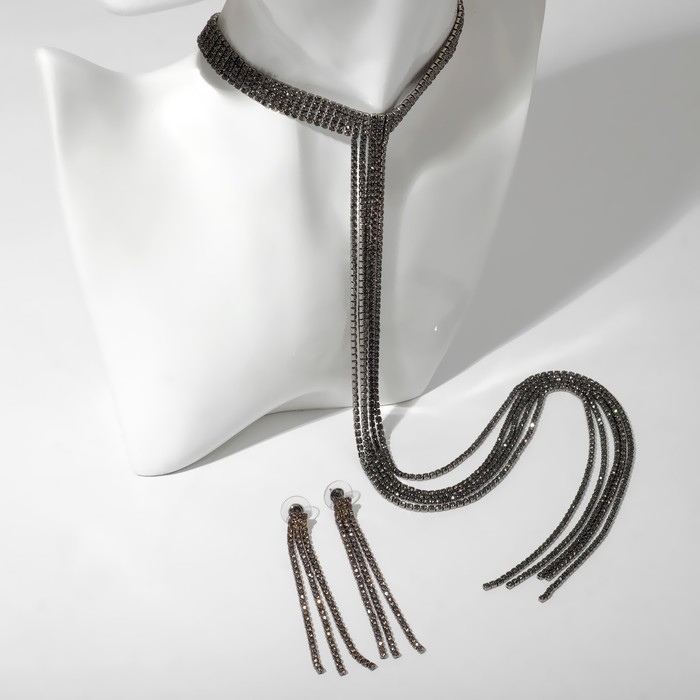 Набор 2 предмета: серьги, колье «Лёд» дорожка, цвет серый, 30 см