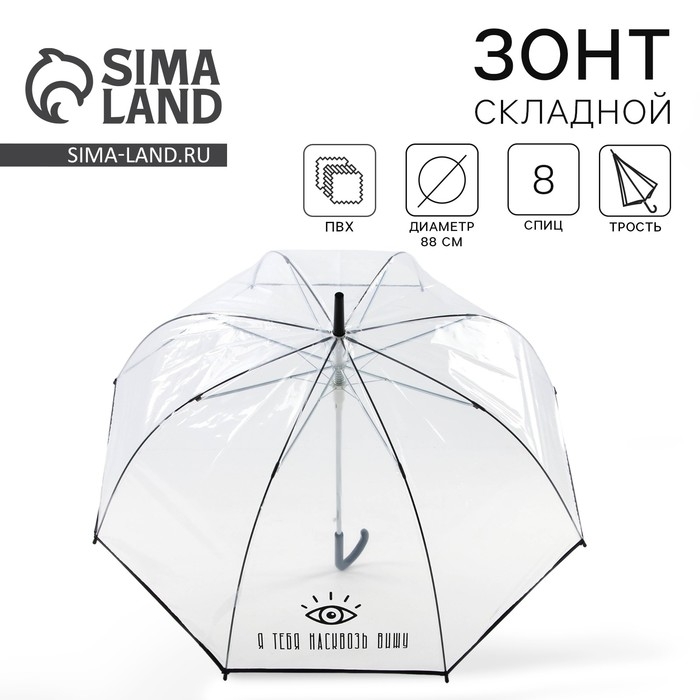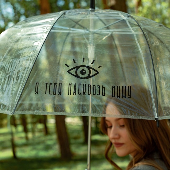 Зонт женский купол "Я тебя насквозь вижу", 8 спиц, d = 88 см, прозрачный