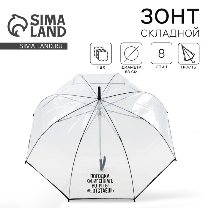 Зонт женский купол "Погодка офигительная, но и ты не отстаёшь", 8 спиц, d = 88 см, прозрачный