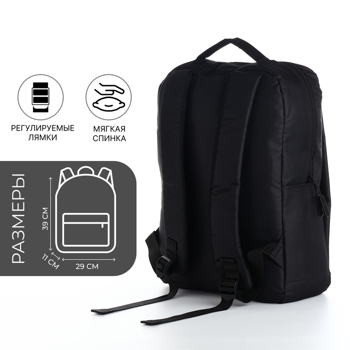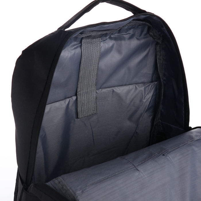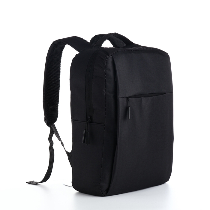 Рюкзак мужской на молнии, 2 наружных кармана, с USB, цвет чёрный