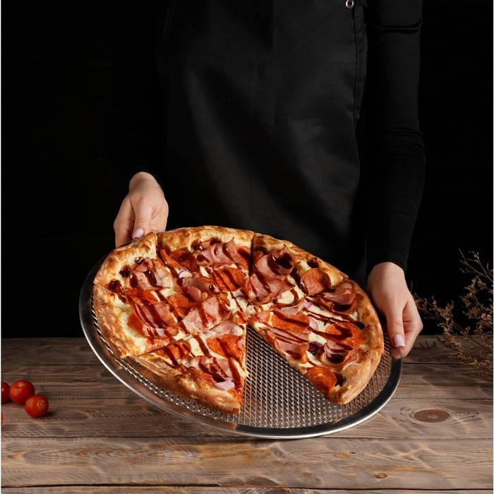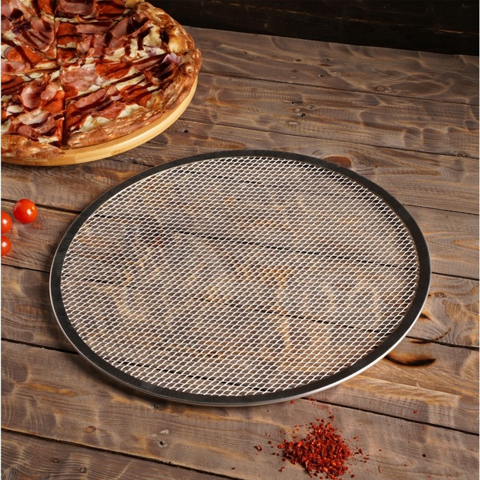Главная задача сетки для выпечки – приподнимать основу из теста, что позволяет горячему воздуху свободно циркулировать в ходе приготовления пиццы в печи. Это способствует равномерному пропеканию теста и образованию хрустящей корочки.