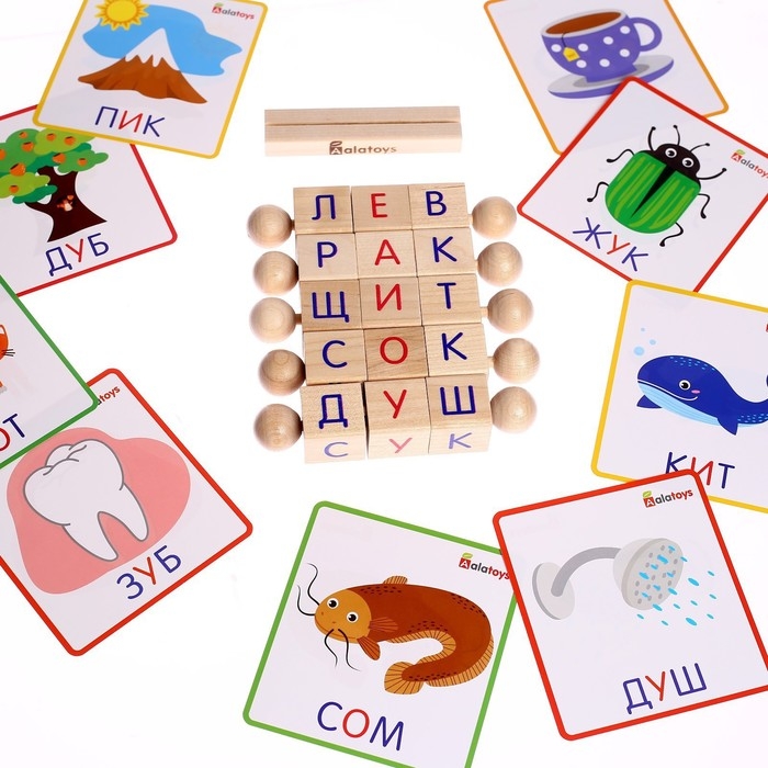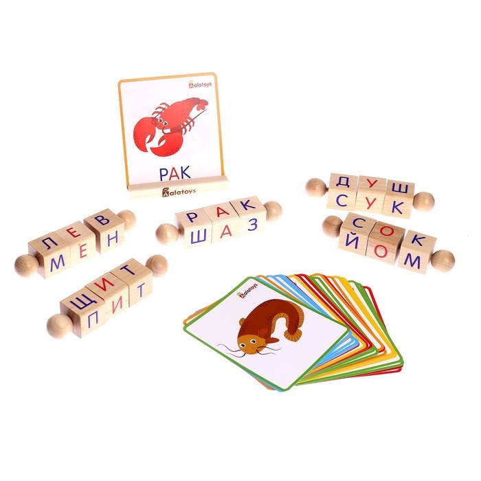 Игрокам раздаются цепочки кубиков и соответствующие карточки. Карточки лежат стопкой стороной без названий, изображение на верхней карточке скрыто от игрока (например, листком бумаги). По команде «Начали!» игроки одновременно открывают первую карточку, говорят название изображения и составляют его из кубиков. Как только слово собрано, игрок показывает его ведущему, если все верно, открывает новую карточку и составляет следующее слово. Задача игроков — составить все слова на своих карточках быстрее остальных. Побеждает тот, кто закончил раньше всех. При этом у игроков должно быть равное количество карточек.