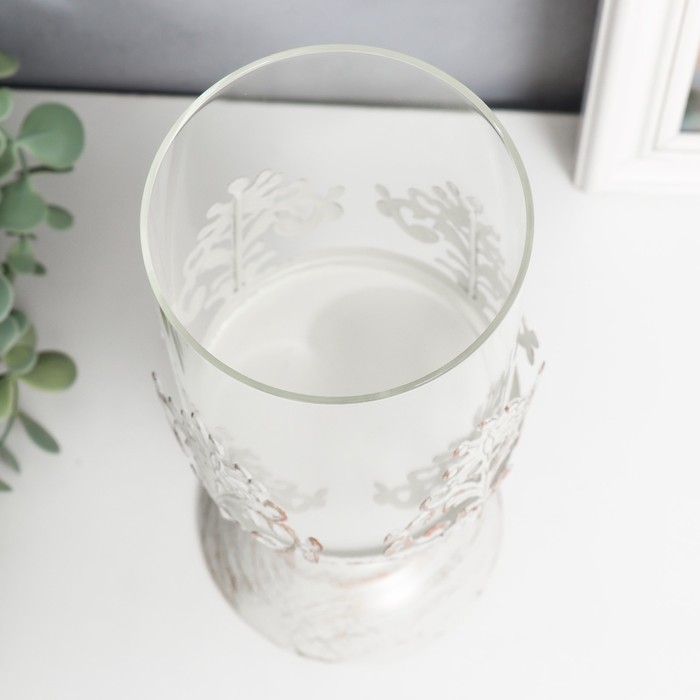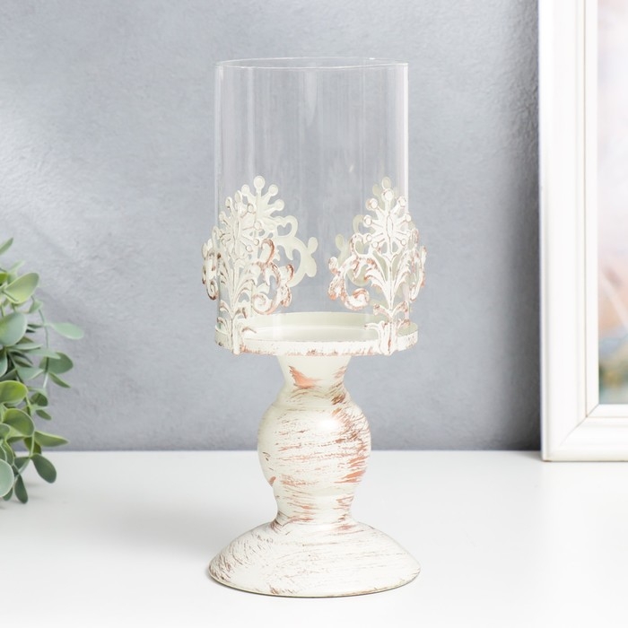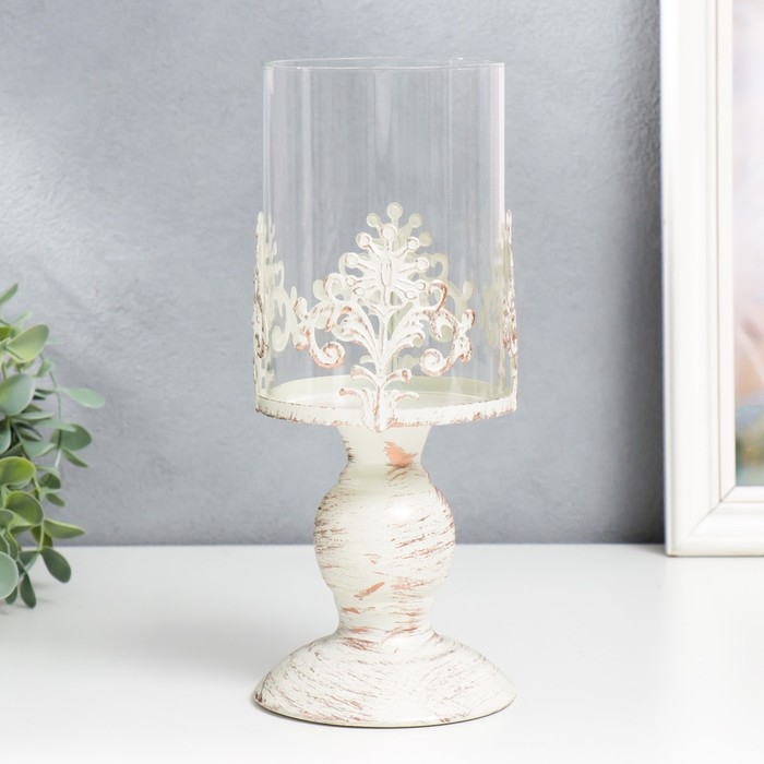 Подсвечник металл на 1 свечу "Витиеватый цветок" белый с патиной 25,5х10,5х10,5 см