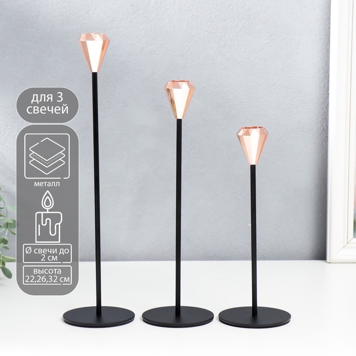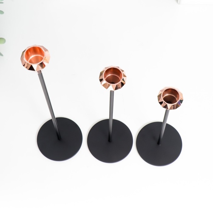 Подсвечник металл "Милан. Грани" набор 3 шт медь высота 22; 26,5; 32 см 32х8х8 см