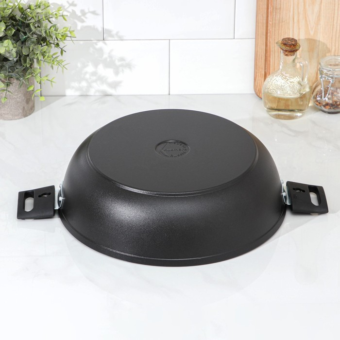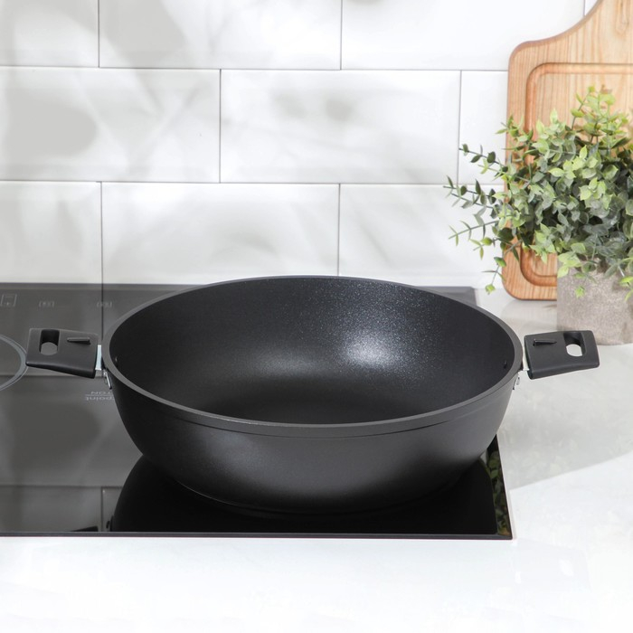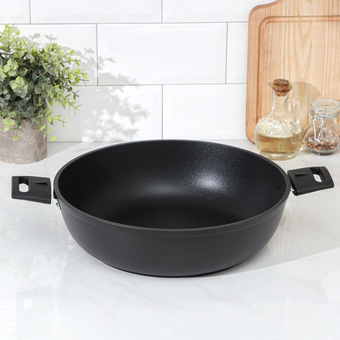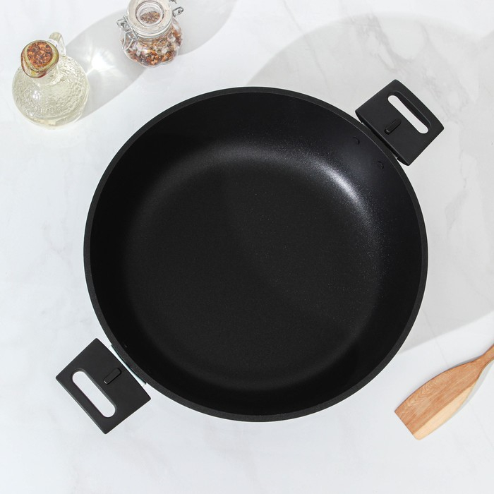 Сковорода «Традиция», d=30 см, h=8,5 см, съёмные ручки, антипригарное покрытие, цвет чёрный