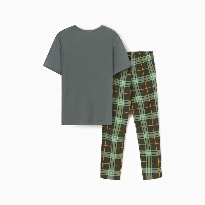 Комплект (футболка/брюки) мужской, цвет зеленый/клетка, размер 46