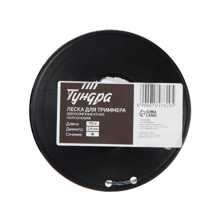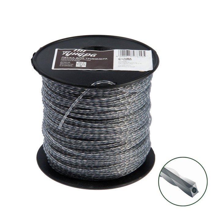 Леска для триммера ТУНДРА, сечение витой квадрат с жилой, двухкомпонентная, d=2.4 мм, 110 м
