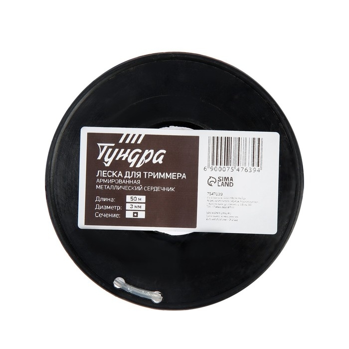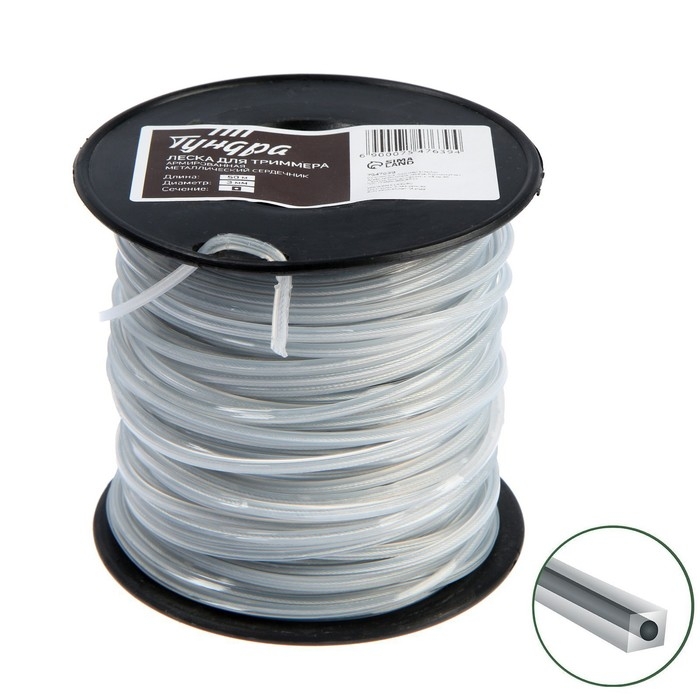 Леска для триммера ТУНДРА, сечение квадрат, метал. сердечник, армированная, d=3 мм, 50 м