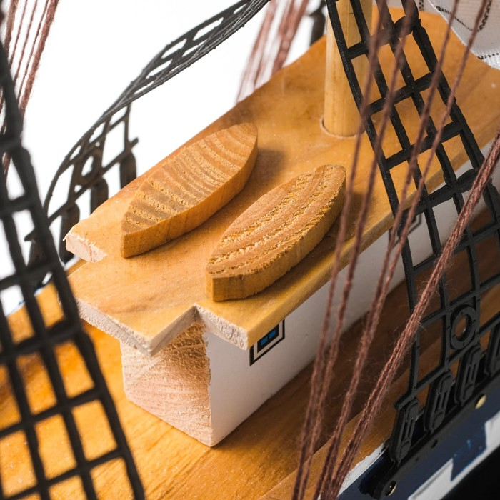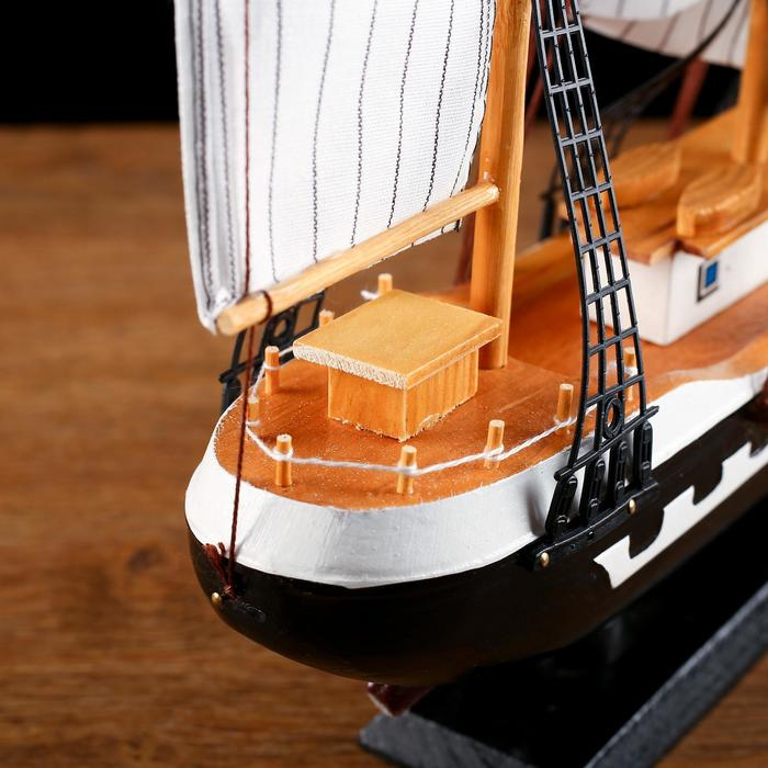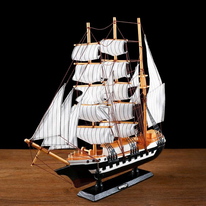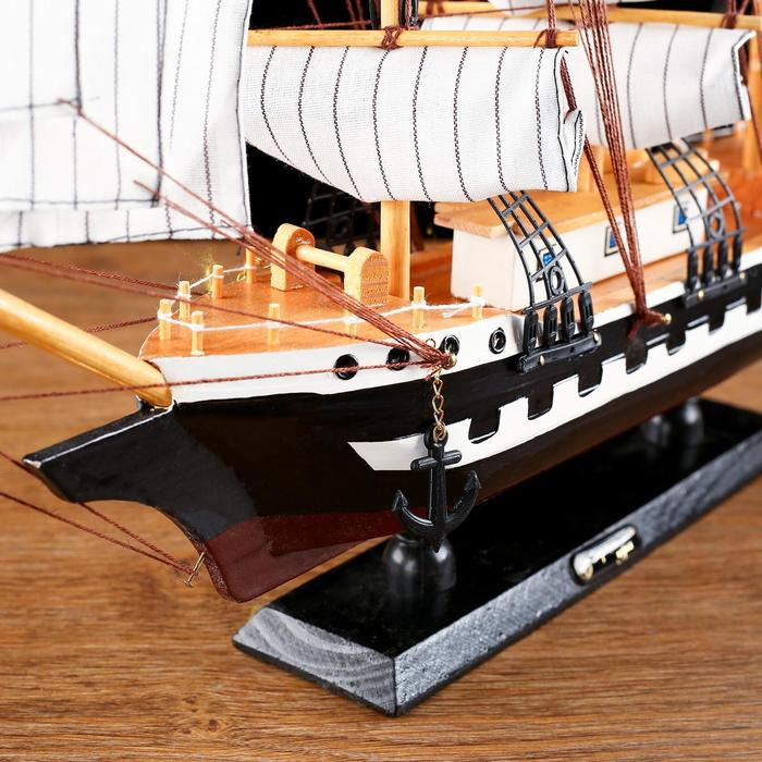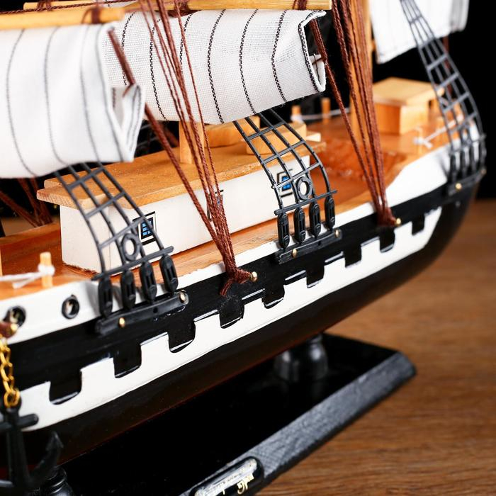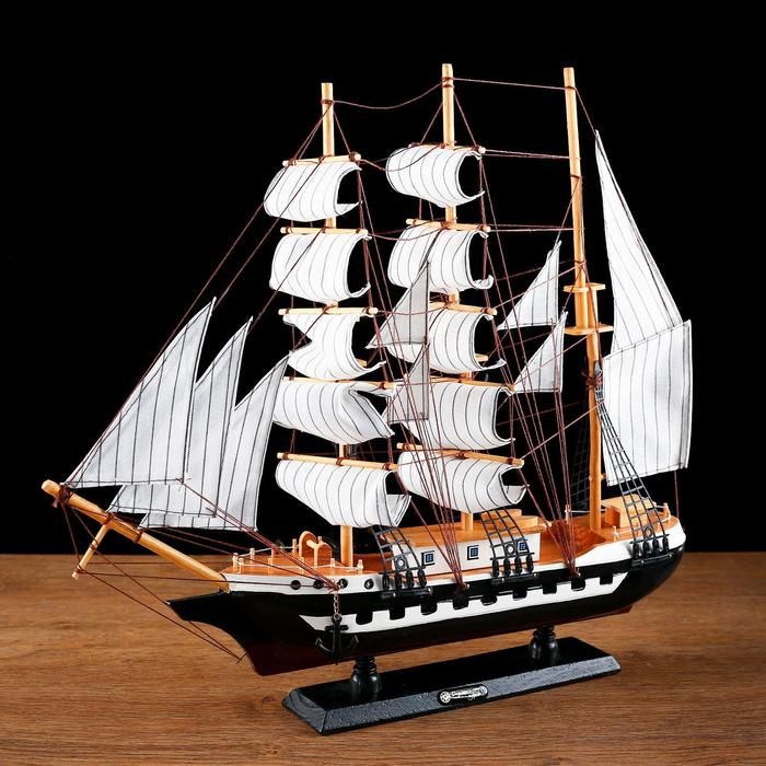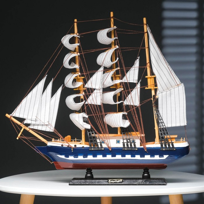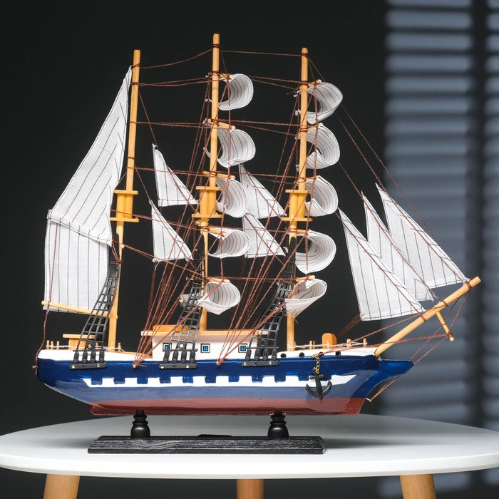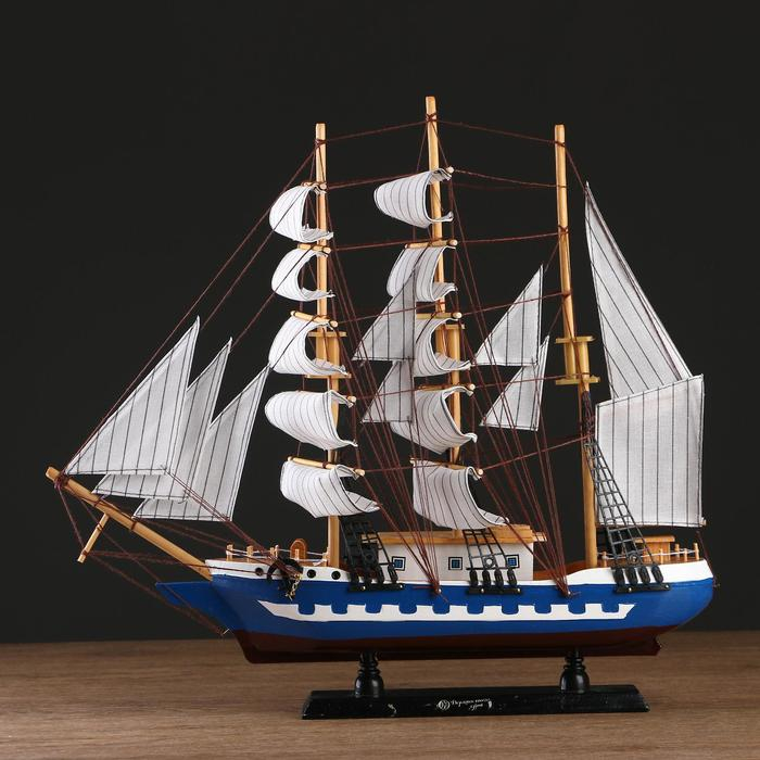 Корабль сувенирный большой «Рион», борта сине/чёрные, паруса бежевые с полосами, 50х44х10 см