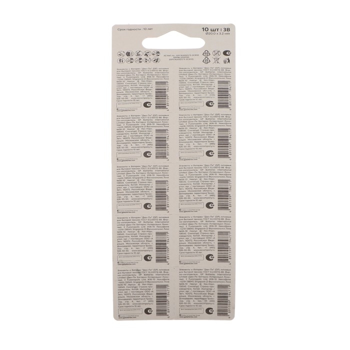 Батарейка литиевая GP, CR2032-10BL, 3В, блистер, 10 шт.