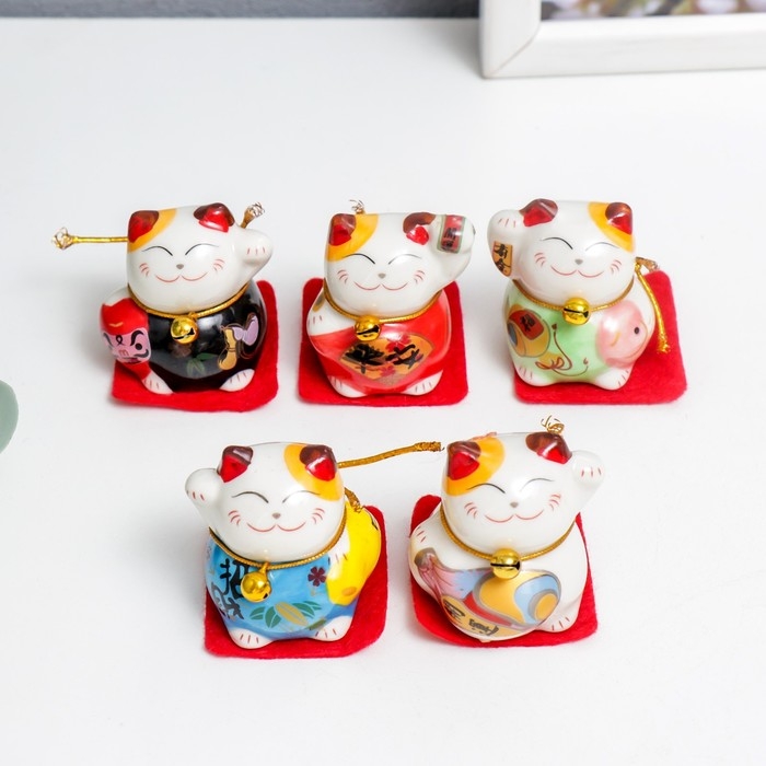 Сувенир керамика "Манэки-нэко с аксессуарами" 4,5х3,8х4,6 см набор 5 шт