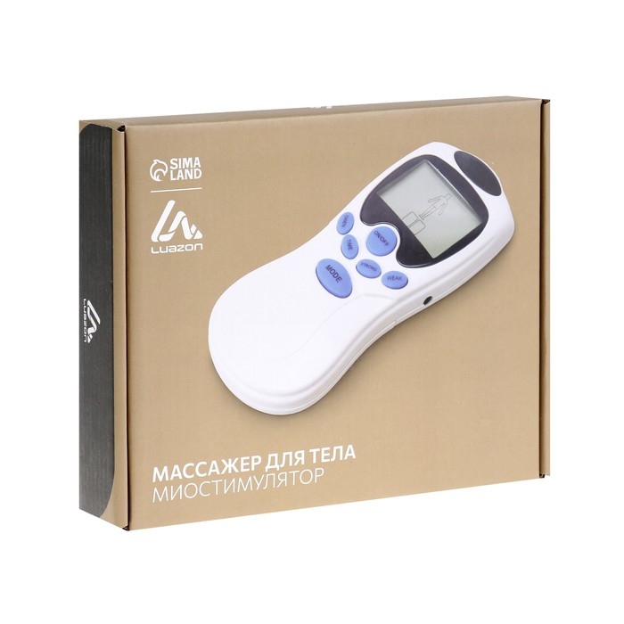 Массажер для тела Luazon LEM-35, миостимулятор, 10 режимов, 4 электрода, от USB, серый