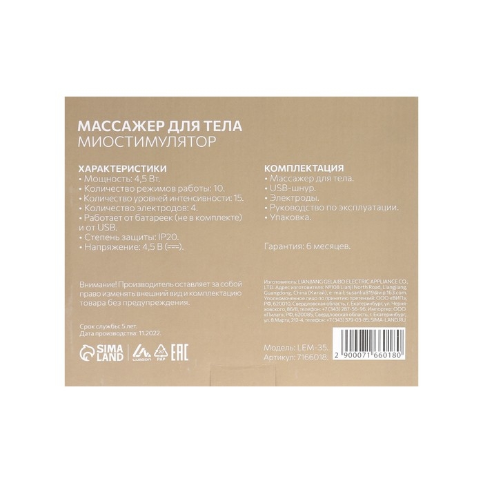 Массажер для тела LuazON LEM-35 укрепляет мышцы тела, устраняет целлюлит, улучшает тонус кожи, устраняет боль в мышцах.