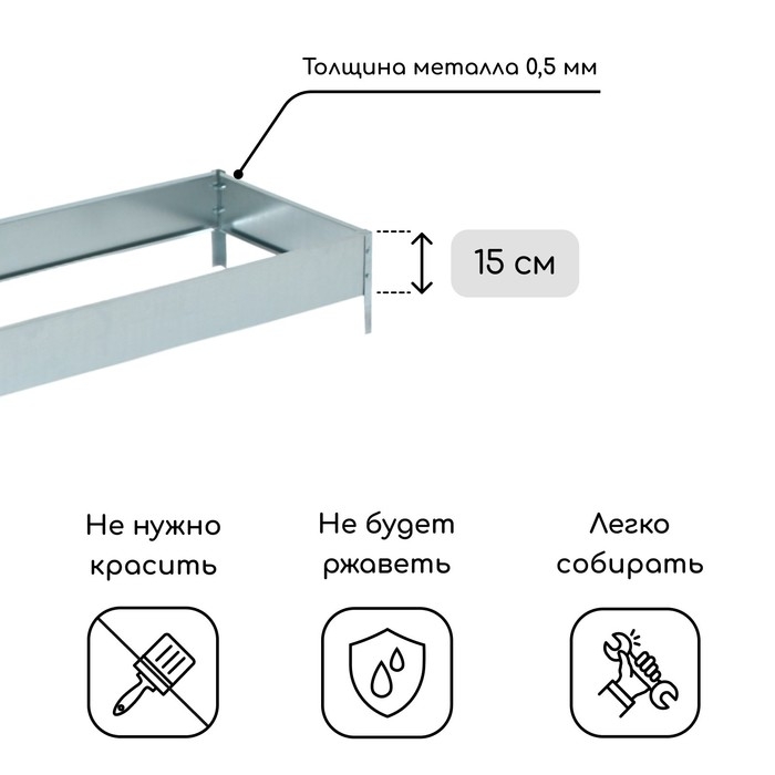 Грядка оцинкованная, 195 × 100 × 15 см, серая, Greengo