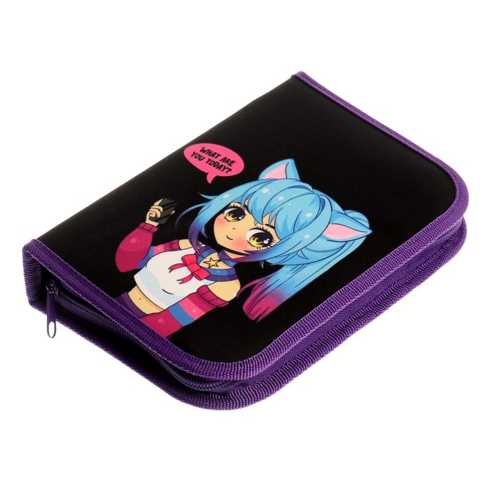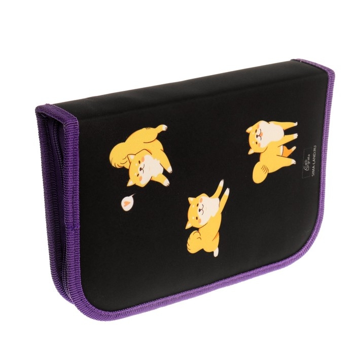 Пенал 1 секция 140 х 210 х 40 мм, откидной карман и косметичка, тканевый, Calligrata TOP Content "Корги"