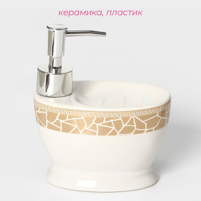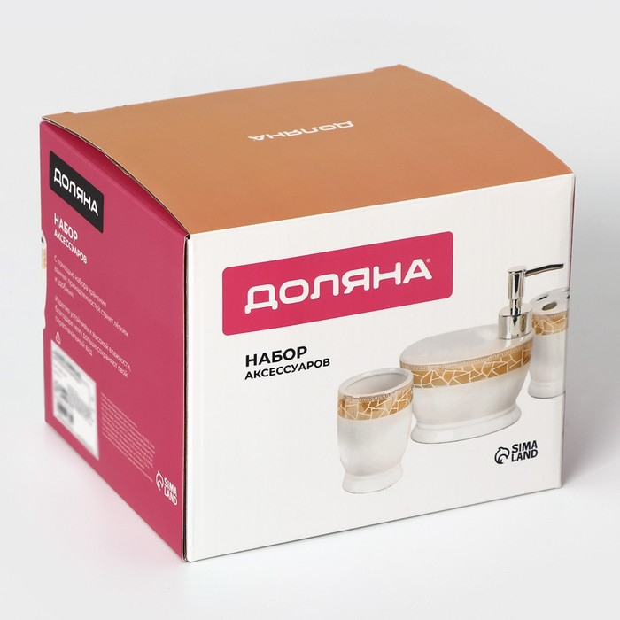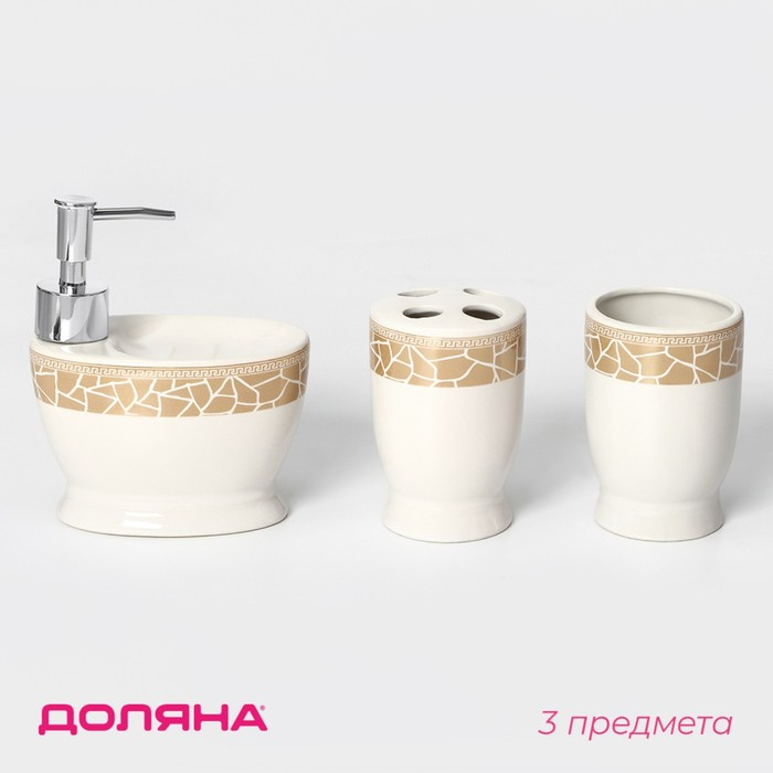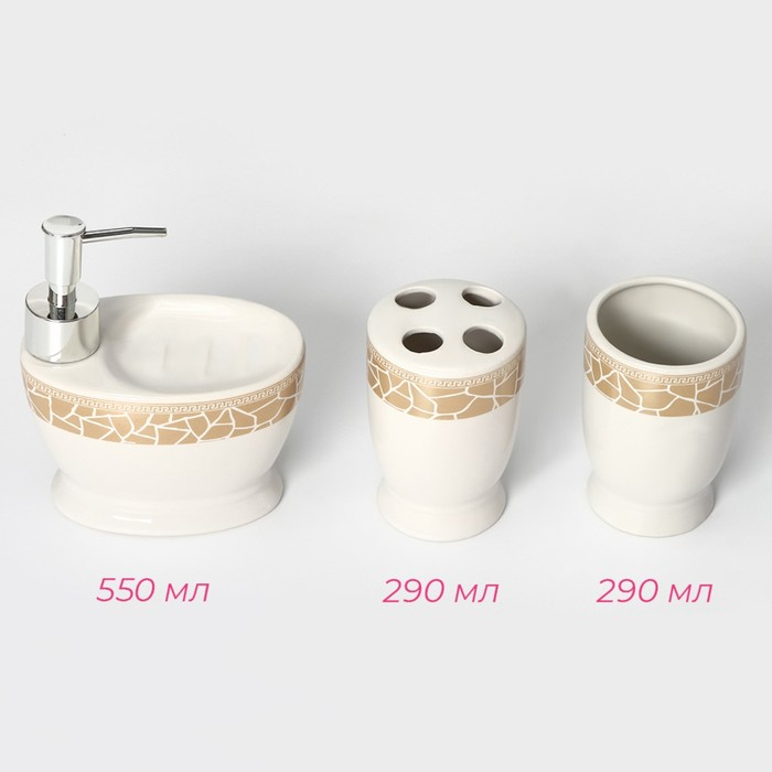 Набор аксессуаров для ванной комнаты Доляна «Мрамор», 3 предмета (дозатор с подставкой 550 мл, 2 стакана)